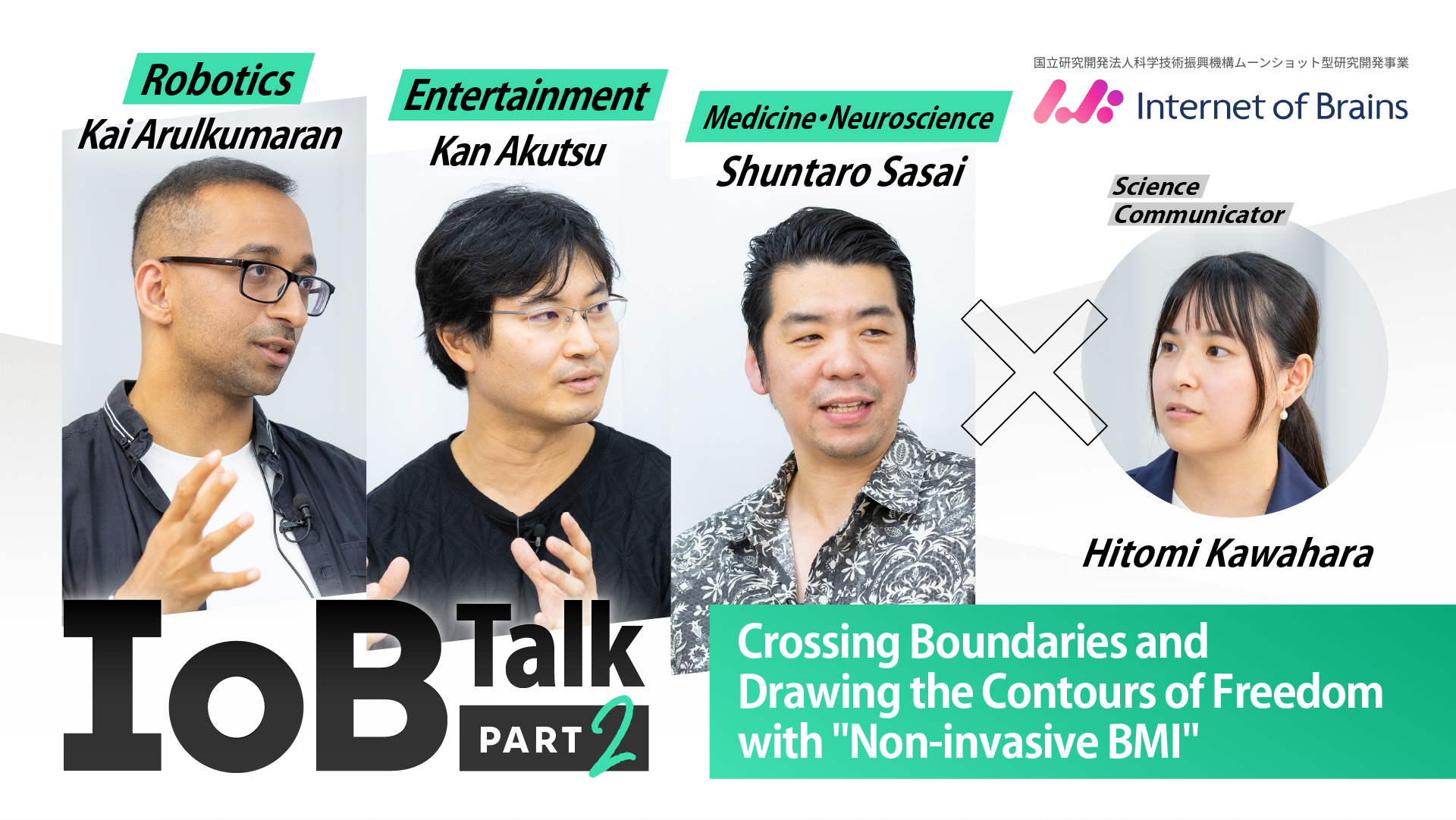 IoB researchers discuss the new resolution of “Freedom” expanded by non-invasive BMI. Please check the main video for the full picture of the grand future map they are drawing, including further applications and a collaborative vision utilizing the common platform. (YouTube link)Talk by IoB Non-Invasive BMI Developers Writing and Video Editing by Space-Time Inc. |