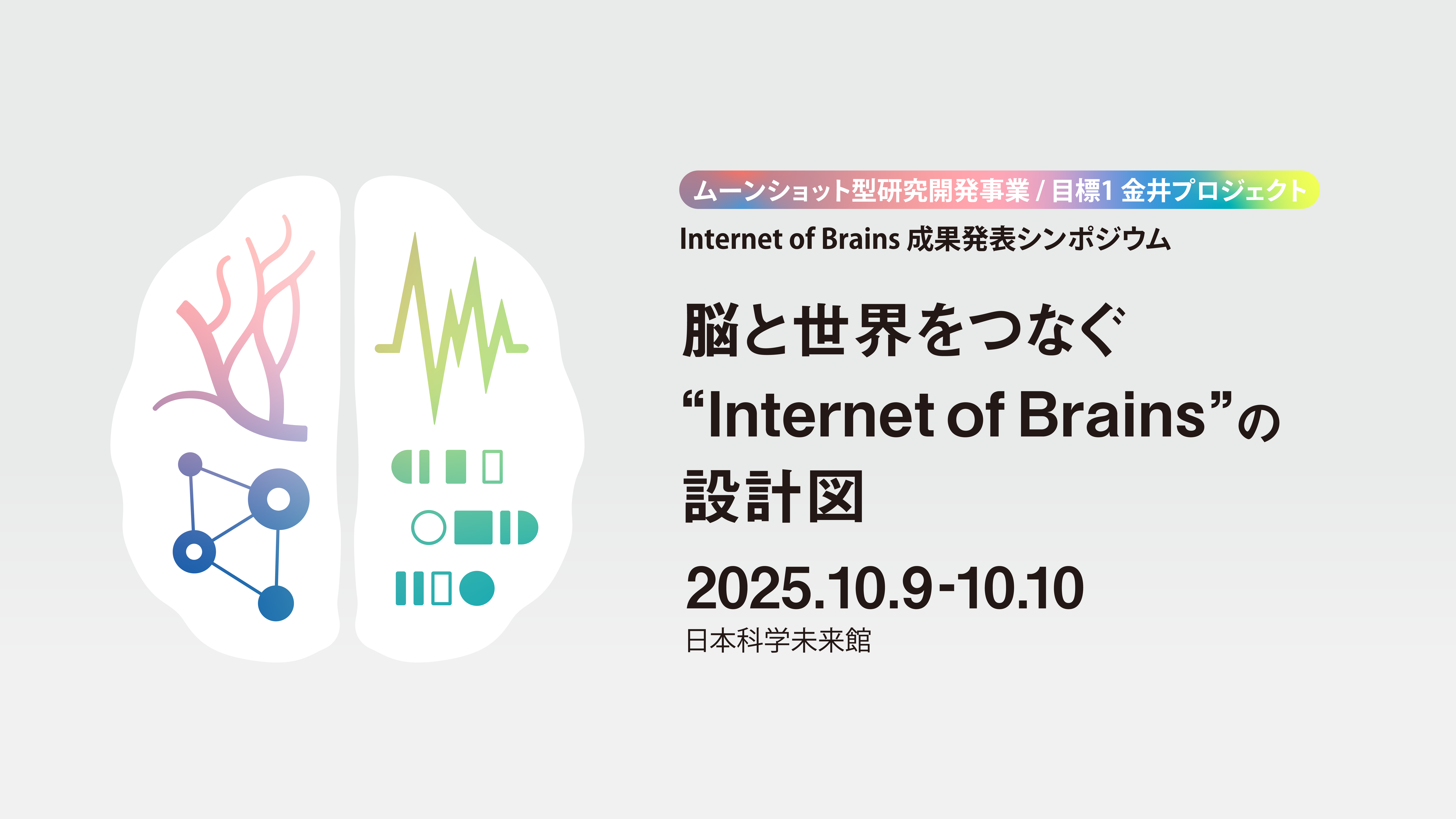 2025年10月9日(木)・10日(金)に日本科学未来館(東京 お台場)にて、ムーンショット目標1金井プロジェクト Internet of Brains の5年間の研究成果を報告するシンポジウム「脳と世界をつなぐ”Internet of Brains”の設計図」を実施しました。
